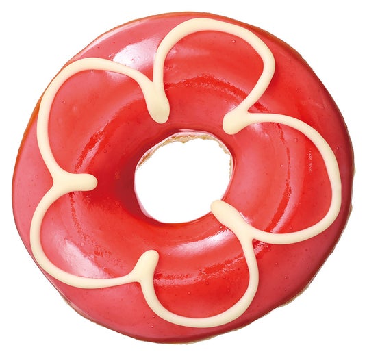 『ストロベリー フラワー』は、ふわふわの生地に甘酸っぱいストロベリーチョコをコーティングし、ストロベリーピューレ入りのジューシーなナパージュを重ねた爽やかなドーナツです。ミルキーなホワイトチョコで一輪の花を描き、華やかに仕上げています。