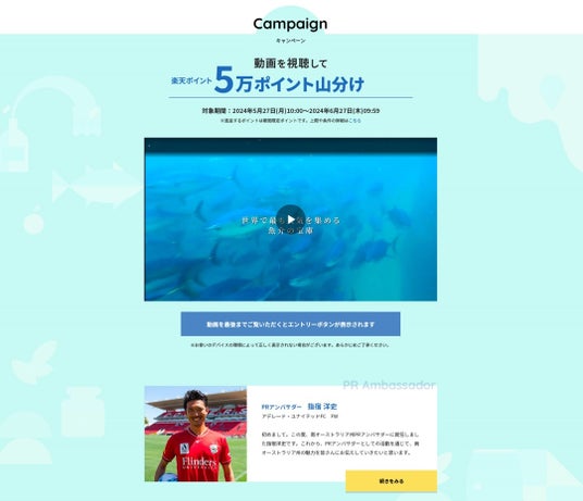 元アデレード・ユナイテッドFCの指宿 洋史選手*が出演する動画を視聴しエントリーされた方対象。