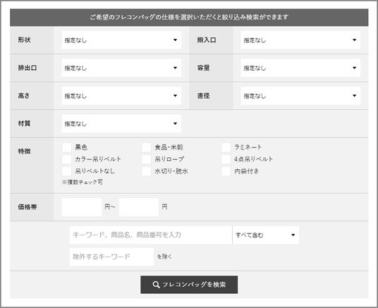 これにより、お客様が必要とするフレコンバッグの種類をカンタンに絞り込むことで、より早くご希望の商品をお探しいただくことが可能となりました。
