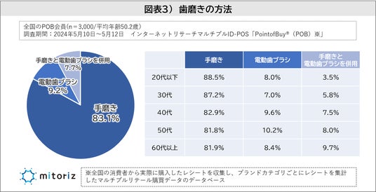 ・歯磨きの方法は「手磨き」が83.1%で超多数派に!電動歯ブラシの使用率は年代と共に上昇