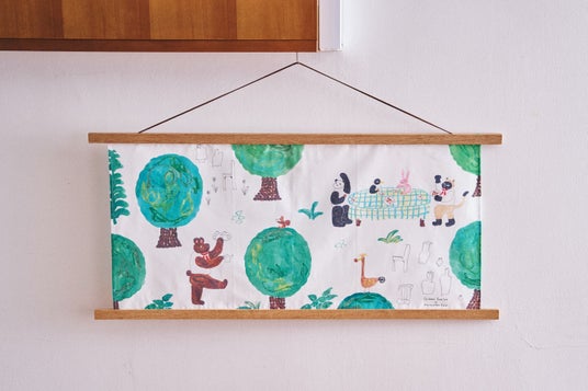 ティータイムを楽しむためのオリジナルティータオルも登場いたします。「お菓子とお茶が揃ったら、さぁティータイムのはじまり!」賑やかな動物たちのお茶会を垣間見るような、よしのちはるさんの遊び心あふれる絵をダイナミックにプリントしました。