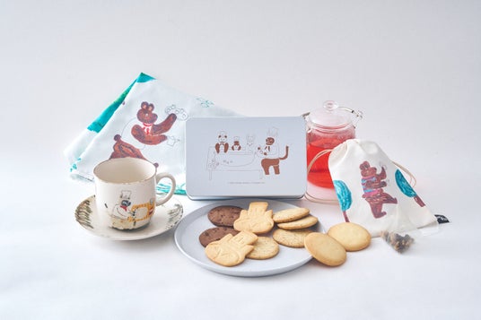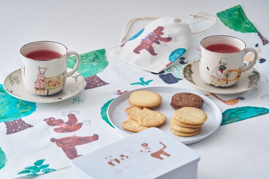 ○セット内容:「カップ&ソーサー」×1点、「どうぶつたちのクッキー缶 “COOKIE TIME”」×1個、「クッキーとハーブティーの巾着セット」×1個、「どうぶつたちのティータオル」×1点