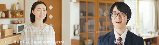 「仕事と私との予定どっちが大事なの!?」篇には、ガーリィレコードチャンネルのフェニックスさんが夫役で登場。妻との夕食の予定を「仕事が入った...」と断る夫(フェニックスさん)は、妻から「仕事と私との予定どっちが大事なの!?」と究極の二択を迫られます。夫(フェニックスさん)の予想外の選択とコミカルな展開にご注目ください。