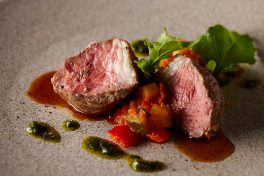 前菜でご用意する「スモークサーモンと夏野菜のミルクレープ オレンジソース」は、なめらかなクリームチーズとスモークサーモン、新鮮な夏野菜をもちもち食感のクレープで包んだ、ミルクレープ風の一品です。甘酸っぱいオレンジソースがアクセントになった夏らしい爽やかな味わいをお楽しみください。メインディッシュには、クセが少なく味わい深いラムランプをバーベキューソースでジューシーに焼き上げた「ラムランプのグリル バーベキューソース」を提供します。夏野菜をふんだんに使用したラタトゥイユと合わせてお召し上がりください。