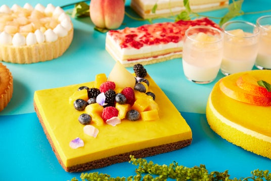 今年の夏は、フレッシュなピーチ&マンゴーを使用したさまざまなスイーツが味わえるデザートブッフェを提供します。産地の異なる4種類の濃厚なマンゴーを一度にお楽しみいただける食べ比べをご用意するほか「ピーチタルト」や「ショコラマンゴー」、「ピーチ&マンゴーロールケーキ」など、トロピカルな見た目と味わいのスイーツを取り揃えました。フルーツ本来の味をご堪能いただけるようピーチやマンゴーは大きくカットし華やかにトッピングしています。夏らしい爽やかな甘さのデザートの数々をお好きなだけご堪能ください。