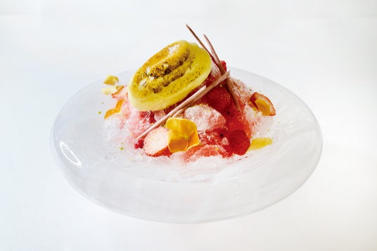 口の中でかき氷、ソルベ、アイスクリーム、クリームなどが交わり、じんわりとろけるような食感をお楽しみいただけます。