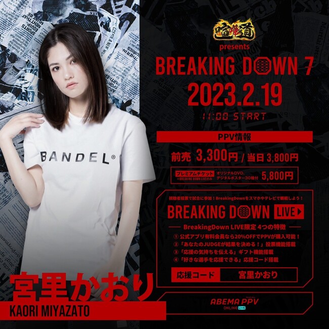 「BreakingDown」の掲げる、格闘技や格闘家の既存イメージを”壊し続ける”大会コンセプトに賛同し、宮里選手をファンの皆様と共にサポートし応援させていただきます。