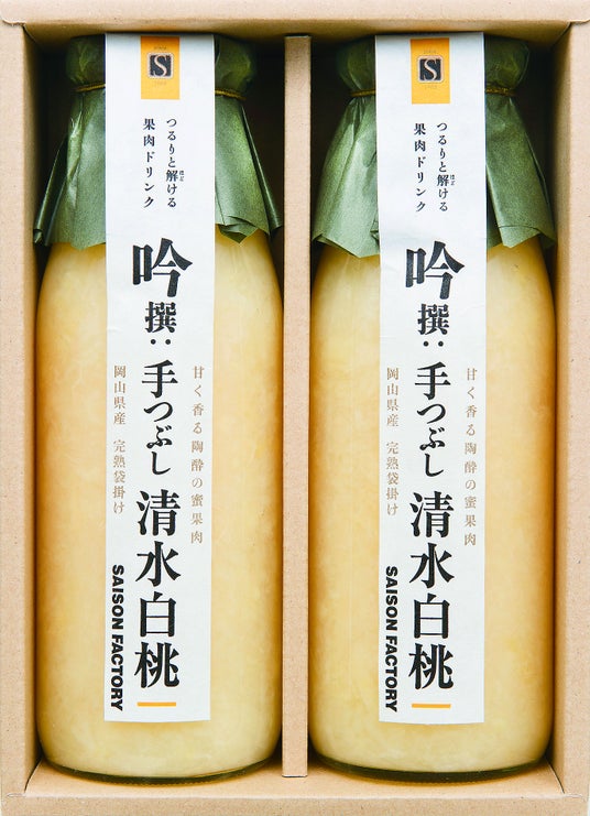 ギフト説明 岡山県産清水白桃を使用したドリンクセット。