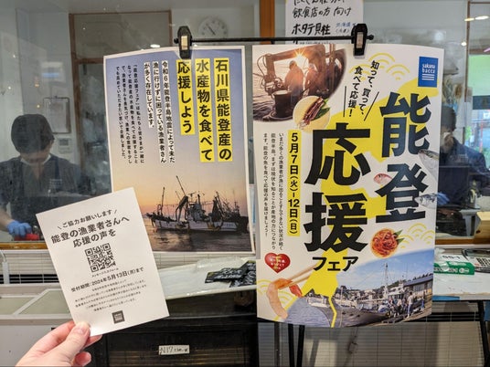 - 昨夏、能登を訪れ、美味しいお魚をたくさんいただきました。元日は本当に驚き、胸が痛みました。まずは現地の方の生活の根本安定が最優先ですが、豊かな海の幸が戻ってくることを、お祈りしています。北陸の魚が大好きです。なので、これからも災害ボランティアで能登に伺います。つくモールでまたイカを食べたいです。楽しみにしてます!