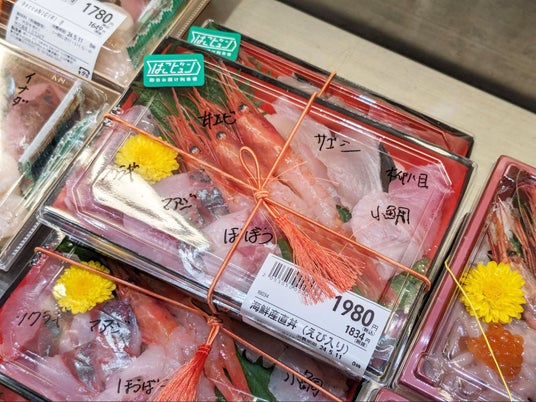 サカナバッカグランスタ東京店にてJR東日本グループの列車貨物輸送サービス「はこビュン」を利用して、高鮮度な能登産「海鮮産直丼」を5月10日(金)に限定10食を販売。海鮮産直丼は、当日届いた能登産のアマエビ、マアジ、ホウボウ、サゴシ、コダイ、フクラギ(ブリの幼魚) 、ヤナギハチメ(ウスメバル)を使いました。
