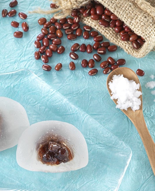 江戸時代から塩づくりで有名な赤穂の塩と、北海道産の小豆を使って丁寧に炊いた粒あんを、わらび餅で包みました。