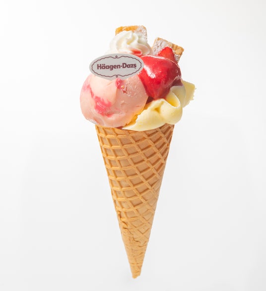 ハーゲンダッツ ミニカップ『抹茶&ブラウニー』に滑らかな口どけのストロベリームース、ベリージュレを組み合わせました。一口食べるごとに食感、風味が異なり、ハーゲンダッツアイスクリームを引き立てます。