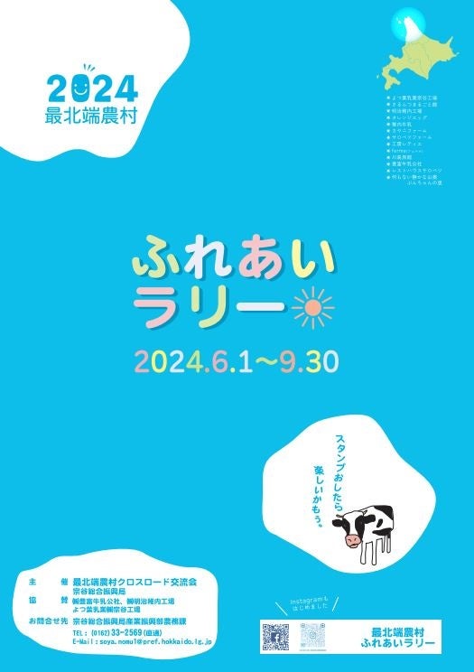 ※ラリー参加証(パンフレット)は宗谷総合振興局農務課ホームページ(https://www.souya.pref.hokkaido.lg.jp/ss/num/crossroad/)からもご覧いただけます。詳細等につきましては宗谷総合振興局農務課ホームページ及び最北端農村クロスロード交流会Facebook(https://www.facebook.com/saihoku.crossroad/)からも随時お知らせいたします。