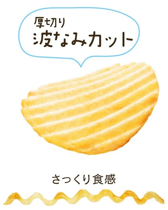 「夏ポテト」は、国産の夏の“新じゃが”のみを使った季節限定の厚切りポテトチップスです。新じゃがの収穫は、初夏に九州から始まり、秋の北海道まで徐々に「じゃがいも収穫前線」が北上していきます。夏の新じゃがは、水分が多くみずみずしいのが特長で、波型の厚切りカット(波なみカット)でフライすることで、さっくりとした軽い食感を実現しています。1993年に「うすしお」、「うめ風味」として初登場して以来、時代に合わせてスライス方法や味付け、パッケージを改良しながら夏の定番商品として多くのお客様に愛されています。