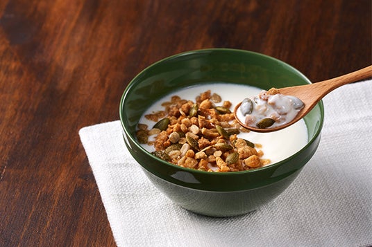 かぼちゃとひまわりの種が入った、食べ応えも満点の美容グラノーラ。高たんぱく質・低糖質なので、朝食や間食にもおすすめです。