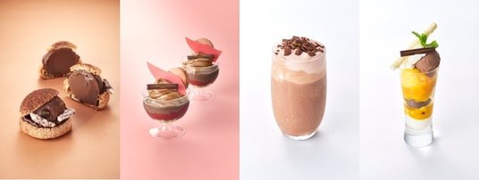 左から「オンカ ショコラ」、「ミニパフェ ソフト フレーズ」、「フラッペ ショコラ」「パルフェ エキゾティック」
