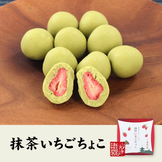 甘酸っぱい丸ごとフリーズドライのいちごに、石臼挽き宇治抹茶を贅沢に使用した抹茶チョコレートでコーティング。