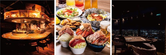 左から「北海寿司と天ぷら すし山 新宿」「北海もんじゃ×鉄板しゃぶしゃぶKIBORI」「Series the Sky」イメージ