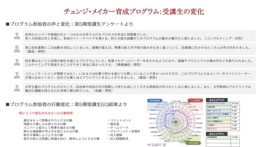 第4期ではプログラム後の参加企業と自治体の事業連携や社員出向が実現し、第5期は受講生有志が中心となって、提案実現に向けた活動を続けています。