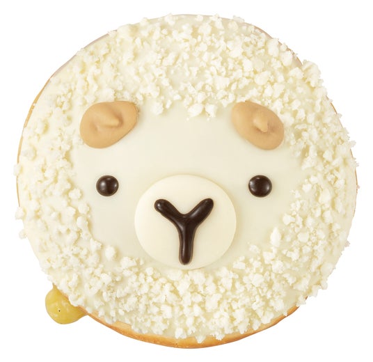 『クリスピー・クリーム・プレミアム 北海道 ひつじ カスタード』は、北海道の代表的な動物「ひつじ」をイメージしたドーナツです。ふわふわの生地に北海道産ミルクを使用したカスタードクリームを詰め、ミルキーなホワイトチョコをコーティングしました。つぶらな瞳とキュートな口元はビターチョコで描き、くるんとした角は塩味のきいた香ばしいブロンドカラーのチョコで表現。食感が楽しいホワイトクランチで、モコモコのシルエットに仕上げています。