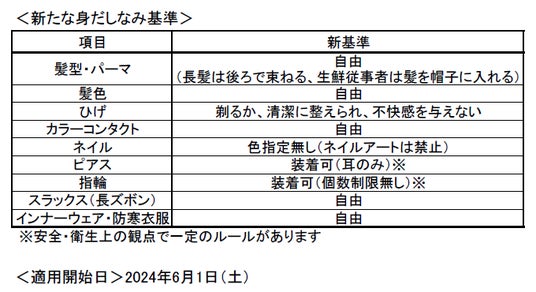 また、身だしなみの自由度を高めることで、従業員の満足度やモチベーションの向上を図るとともに、未来を担う人材の確保と定着など採用環境の改善につなげてまいります。