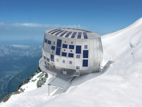 ヨーロッパ アルプス最高峰のモンブラン山頂(標高4,810m)に最も近く、絶壁にそびえる高山施設「ルフュージュ・デュ・グーテ」。ニナファームは、この高山施設を訪れる登山家の協力を得て成分処方の開発を進めています。