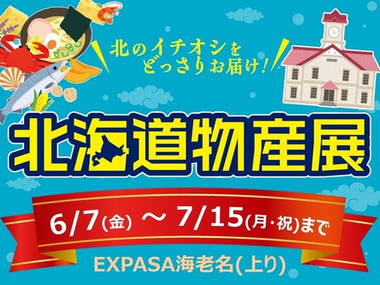 中日本エクシス株式会社 南関東支店(神奈川県海老名市、支店長・渡辺(わたなべ) 宏也(ひろや))は、E1 東名高速道路(東名) EXPASA(エクスパーサ)海老名(上り、神奈川県海老名市)にて、「北海道物産展」を開催します。