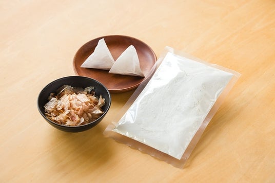 たこ焼き用だしパック、たこ焼きミックス、かつお枯節削りぶしの3点が入ったセット。