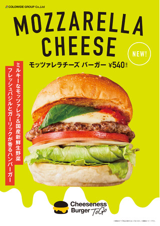 コロワイドグループの株式会社フレッシュネス(代表取締役社長:齋藤 健太朗/本社:神奈川県横浜市西区)は、2022年4月1日(金)より、『Cheeseness Burger ToGo(チーズネスバーガー トゥーゴー)』にて『モッツァレラチーズバーガー』を期間限定発売いたします。