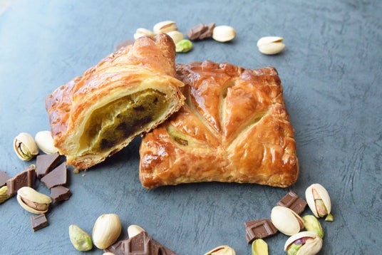香り豊かなピスタチオとチョコレートの二つの味が重なり合う人気のパイ商品。ピスタチオプードルが主体のダマンドクリームに、ペアリキュールとチョコチップを合わせた季節限定商品です。