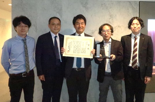 左から、東北大学大学院加藤俊治准教授、当社ソリューション事業部佐野貴士、当社新事業開発部境野眞善、同大学院仲川清隆教授、当社研究開発センター青木亮輔
