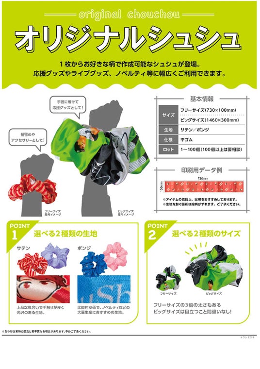 応援グッズやライブグッズ、ノベルティに最適なオリジナルシュシュが登場!