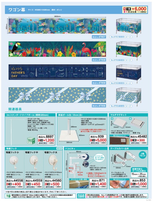 夏の販促に欠かせないこれらのアイテムを活用して、売り場を明るく魅力的に演出しましょう!ご注文お待ちしております。