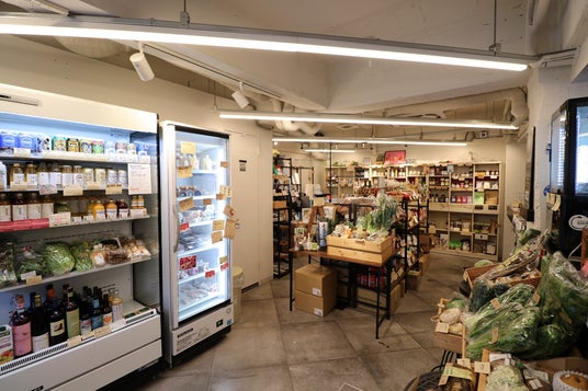 国産の特別栽培※野菜やプラントベースのグローサリー商品、当社オリジナルブランドの発酵スパークリングティー/オーガニックコンブチャ「_SHIP」、コールドプレスジュース、プラントベースメニューなどを取り揃えております。オーガニックやプラントベースに気軽に触れることができる『大泉工場の玄関口』です。