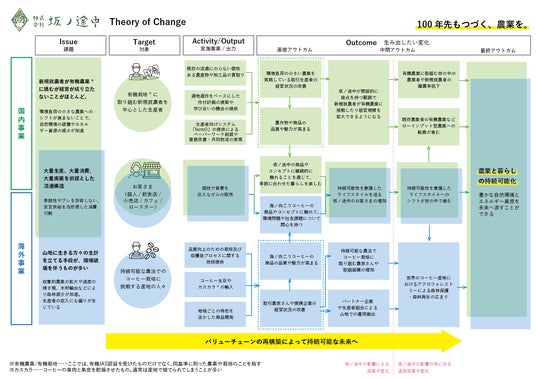 ※Theory Of Change(セオリーオブチェンジ)・・・坂ノ途中がどのような社会課題に向き合い、誰にどのような事業を実施し、どのような変化を生み出すかを示したもの