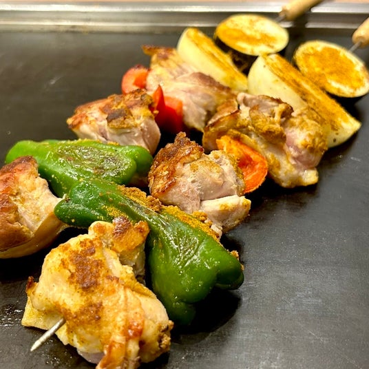 ジューシーなチキンと新鮮な夏野菜をバランスのよいBBQ串に後味引くオリジナルスパイスでやみつきになること間違いなし。ビールとの相性も◎