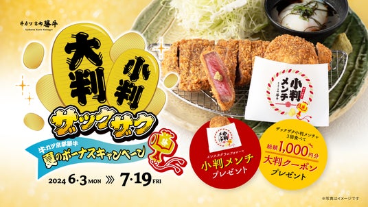 株式会社ゴリップ(本社:京都府京都市)が展開する「牛カツ京都勝牛」は、2024年6月3日(月)~7月19日(金)までの期間限定で『大判小判ザックザク!夏のボーナスキャンペーン』を実施いたします。