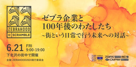 『ZEBRAHOOD 2024』は、株式会社Zebras and Companyが主催するゼブラ企業*や実践者を集めたカンファレンスです。第2回のテーマは『スクランブル ~次の100年をみんなで作る最初の1日~』。多種多様な出自の人々が群れとなり、100年後の未来を共に考え、紡いでいくための新しい関係性/共通アジェンダの創出を目指します。
