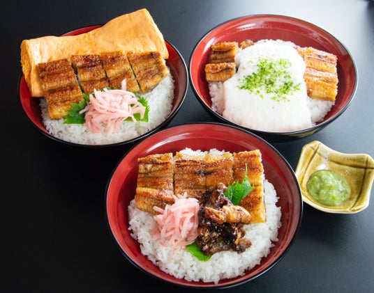 メニューは気軽に味わえる”丼”、蒲焼の量が選べる”うな重”、うな重にう巻・うざくなどがついた”御膳”が中心。気分にあわせてお選び頂けます。当店ではうなぎ一尾は8貫にカットしていますので、女性やお子様でも食べやすい大きさ。ご家族揃ってのお食事にもご利用ください。