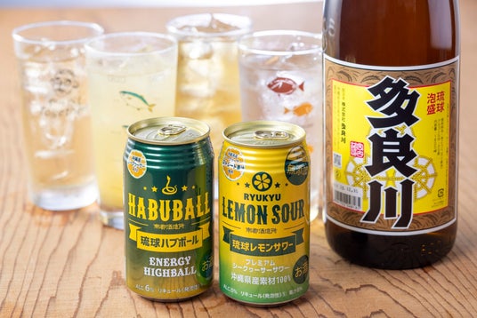 風味豊かな宮古島の泡盛「多良川」(630円)や、ハブエキスとハーブ入りの琉球ハブボール(580円)、沖縄産シークワーサーを使った琉球レモンサワー(580円)、さんぴん茶ハイ(520円)など食材の力強さと相性の良いドリンクを揃えました。