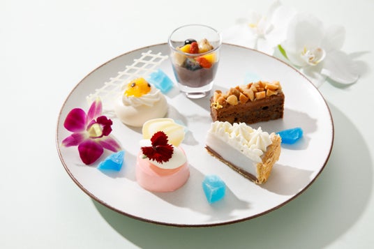 2024年11月に福岡-ホノルル便就航5周年を迎えるハワイアン航空とのタイアッププロモーションの第1弾は、ハワイをコンセプトにしたアフタヌーンティー。マンゴー、パッションフルーツ、ココナッツなどのトロピカルフルーツをふんだんに使用し、ウェルカムドリンクからスイーツ、セイボリー、スコーンまで全てのメニューでハワイの空気を感じられるようなテイストに仕上げました。ハウピアパイやマラサダ、シェイブアイスなど、ハワイのローカルスイーツもお楽しみいただけます。