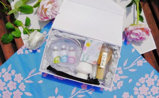 3色抹茶のミニ小瓶セットや「茶の心得」絵巻きが入った初心者向け茶道キット: