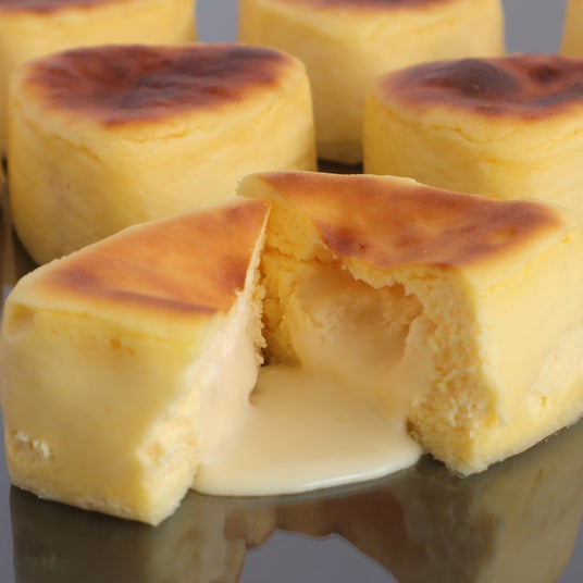 北海道の生クリーム、マスカルポーネ、練乳にこだわっておつくりした生食感のベイクドチーズケーキです。中のソースはとろ~っととろけるチーズフォンデュをイメージ。ギリギリのふわふわ感と、とろけるソースのミルキーで濃厚な味わいをお楽しみください。