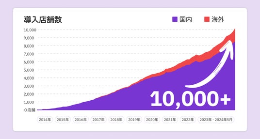 テーブルチェックの予約・顧客管理システムは、2013年10月の提供開始以来、国内外の多くの飲食店にご活用いただいてまいりました。このたび、2024年5月末日時点で、導入店舗数が初めて1万店舗を突破し、10,143店舗になりました。導入店所在地は世界35か国・地域に広がっており、海外の導入店舗数割合も全体の約15%にまで成長しました。