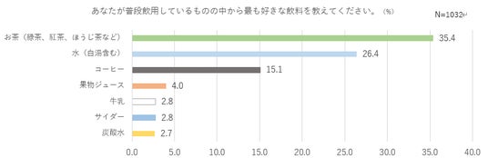 今最も好まれている飲料は「茶系飲料」、その中でもリフレッシュ目的で最も支持されたのは「緑茶」