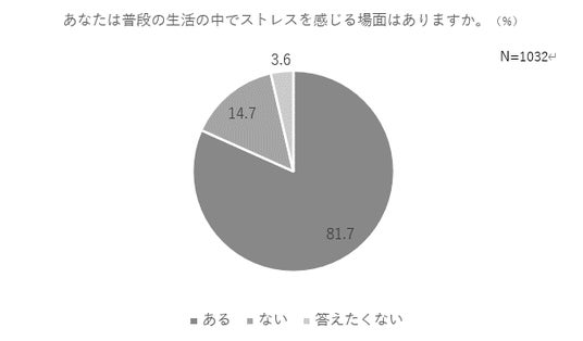 ・普段の生活の中でストレスを感じる場面があると答えたのは81.7%