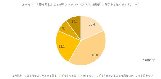 ・「お茶を飲むこと」がリフレッシュに作用すると答えたのは58.4%。そう思わない人と比べて40%近く差をつける