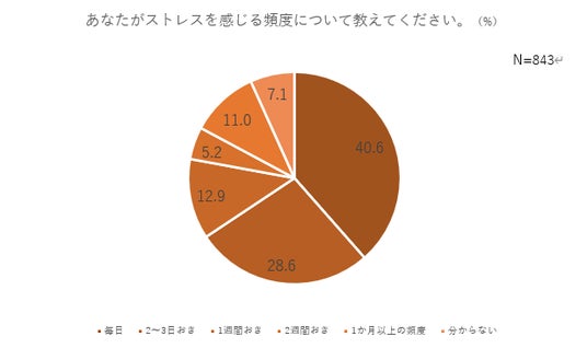・その内の82.1%が毎週ストレスを感じ、40.6%は毎日のようにストレスに悩まされている
