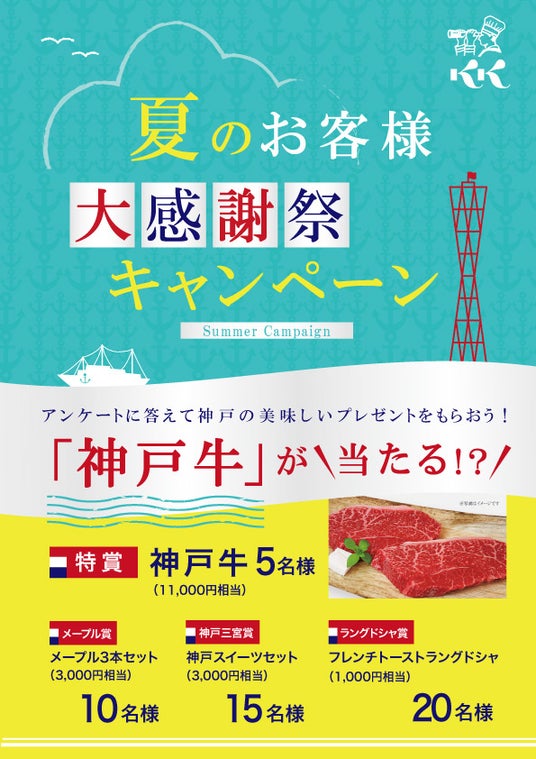 日頃から弊社の商品をご愛顧いただいている皆様への感謝の気持ちと共に、今後もご賞味いただきたい思いを込めて、6月1日より一部店舗にて神戸の美味しいプレゼントが当たるキャンペーンを開催いたします。