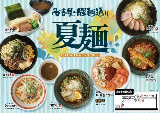 ジェイアール東海フードサービス株式会社(名古屋市/代表取締役:吉村 伸一)は、名古屋驛麺通りにて、6/12(水)~8/31(土)の期間限定で夏麺を販売いたします。今年のテーマは「肉と魚介」。各店が趣向を凝らして考案した、個性豊かならーめんがラインナップ。肉と魚介の風味を味わえる季節限定らーめんをお楽しみいただけます。